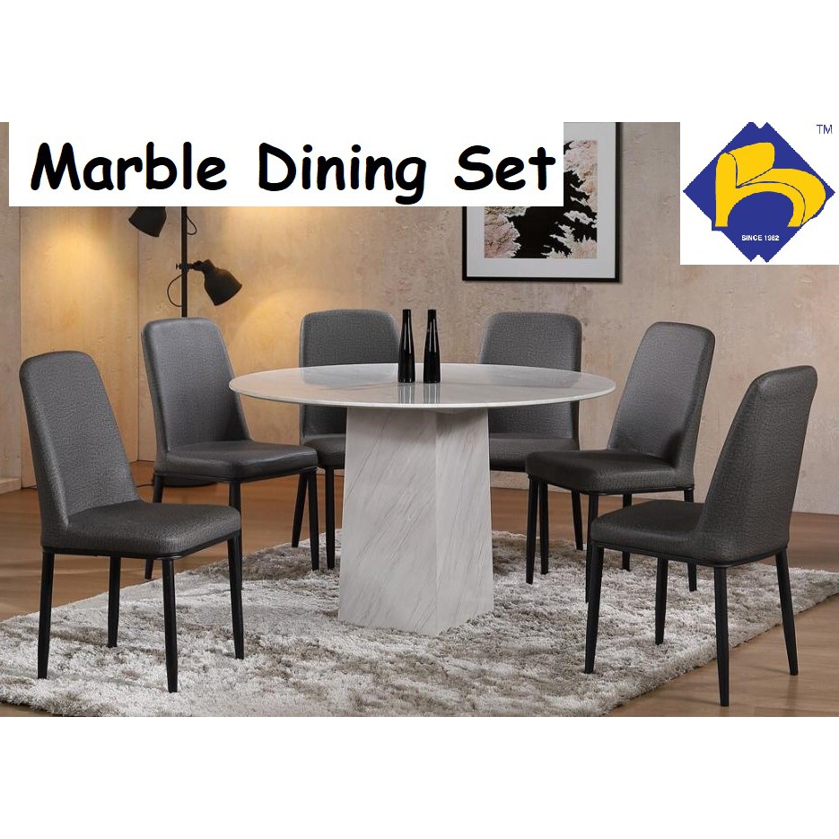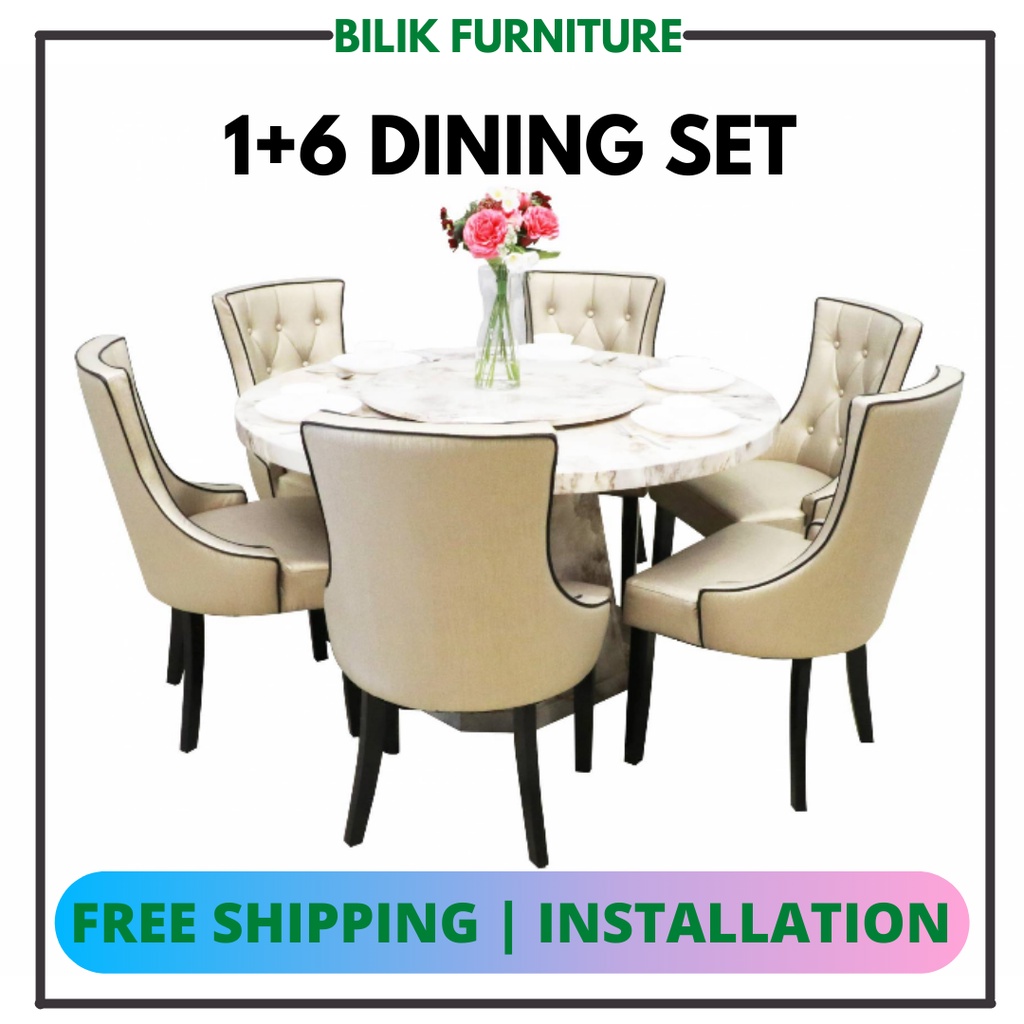 ⭐meja makan bulat besar batu makmar + 2 kerusi ( corak marble). Eureka 012a 4 5ft Round Marble Dining Set 6 Chairs Meja Makan Bulat Deliver Installation Klang Valley An Shopee Malaysia